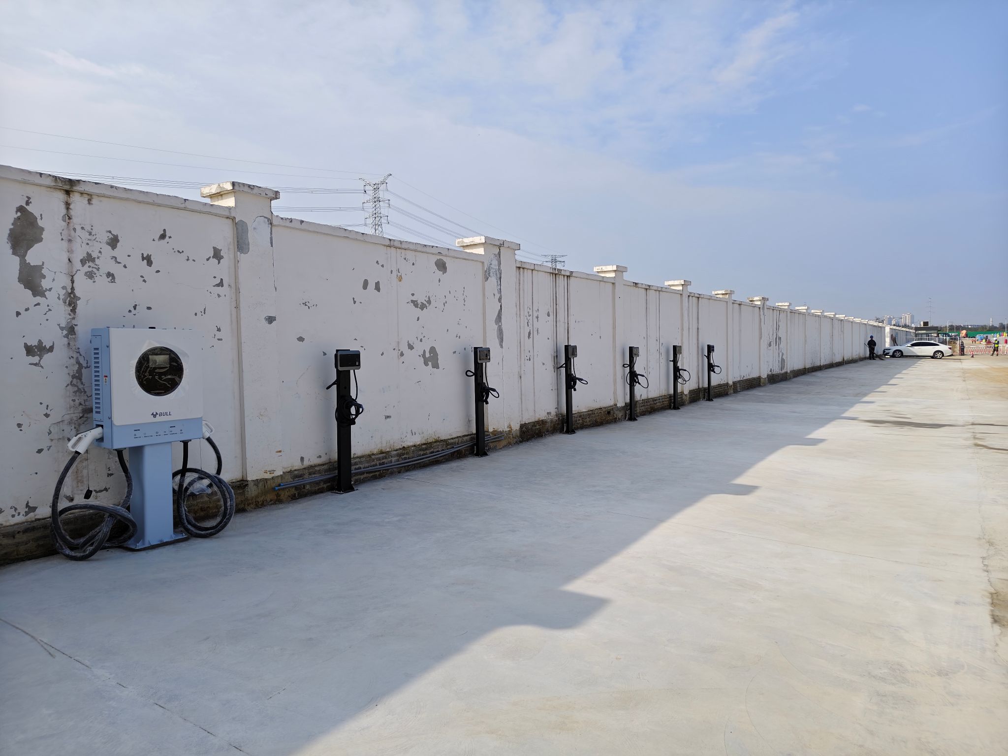 该项目位于六安市裕安区中煤六安电厂,主要包括360平方米的场地平整及混凝土硬化、一个80kW双枪充电桩、6个7kW慢充桩以及两个洗车装置,因业主要求工期为30天,项目团队在克服连续多日阴雨天气、员工通道附近人员多不利施工等因素后,仅用15天完成从场地开挖平整到充电设备安装完成,并将于近期投入使用。