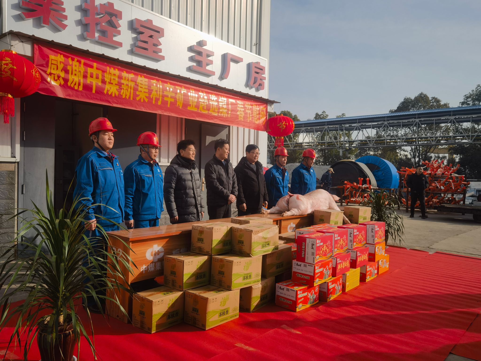 新春佳节来临之际,利辛矿业生产副矿长刘建绘、副总工程师谌计强一行来到利辛矿业选煤厂,看望慰问坚守岗位的一线干部职工,为大家送上大米、面粉、食用油、猪肉、方便面等慰问品和新春祝福。