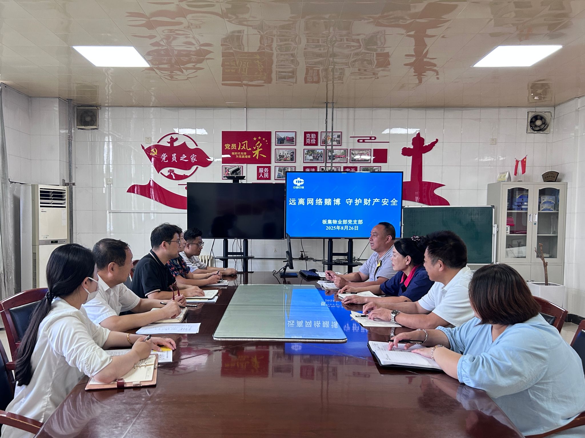 活动中,宣传人员通过多种形式向职工普及网络赌博陷阱及防范知识。一是组织观看了警示教育片《网络赌博——万劫不复之路》。该片通过真实案例剖析,深刻揭示了网络赌博给个人和家庭带来的严重后果,为在场的每一位职工敲响了警钟,使大家直观认识到网络赌博的巨大危害性和欺骗性,理解了“天上不会掉馅饼”的本质。二是该物业部党支部书记结合近年来全国范围内发生的典型网络赌博案件,详细剖析了网络赌博常见的诈骗套路。从“网络棋牌类赌博”中庄家通过后台操控结果,让赌客先尝甜头后血本无归;到“红包赌博”利用群聊发红包押注,金额尾数全由不法分子掌控;再到“游戏赌博”以小博大的幌子,实则技术后台设定赔率,限制赌客提现,让职工们清晰地了解到网络赌博背后隐藏的重重陷阱。