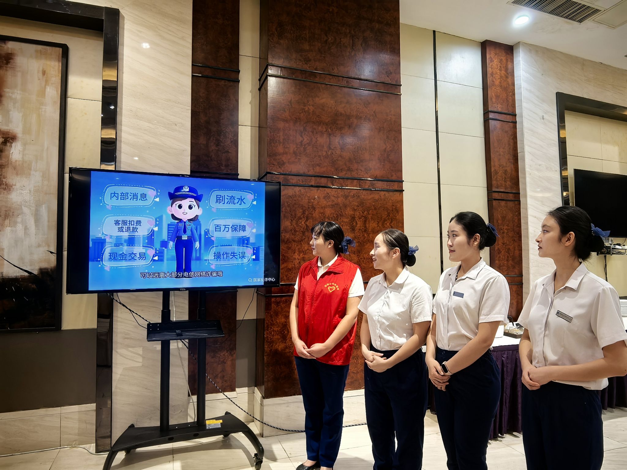 为提升职工防范电信网络诈骗的意识和网络安全防范能力,8月27日,楚源公司新集宾馆组织开展防范电信诈骗宣传活动,构建坚实的“反诈防护网”。