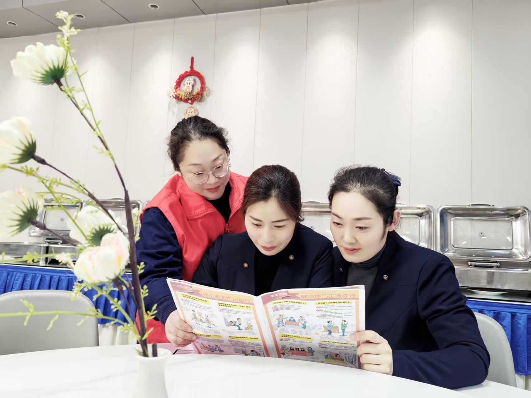 该物业部始终坚持以习近平新时代中国特色社会主义思想为指导,首先利用班前班后会、观看普法视频、微信群等方式向职工进行普法宣传,重点围绕习近平法治思想与生态文明思想、习近平生态文明思想中“十个坚持”“五个重大关系”等核心要义、以及民法典等。其次,通过《生态环境保护督察工作条例》,让职工领会“绿水青山就是金山银山”的发展理念与企业经营的密切关系,并呼吁职工从身边小事做起,如随手关灯、使用环保袋、绿色出行等,营造尊法、学法、守法、用法的良好氛围。最后为了检验宣传效果,该物业部组织开展普法知识有奖问答活动,现场氛围良好。