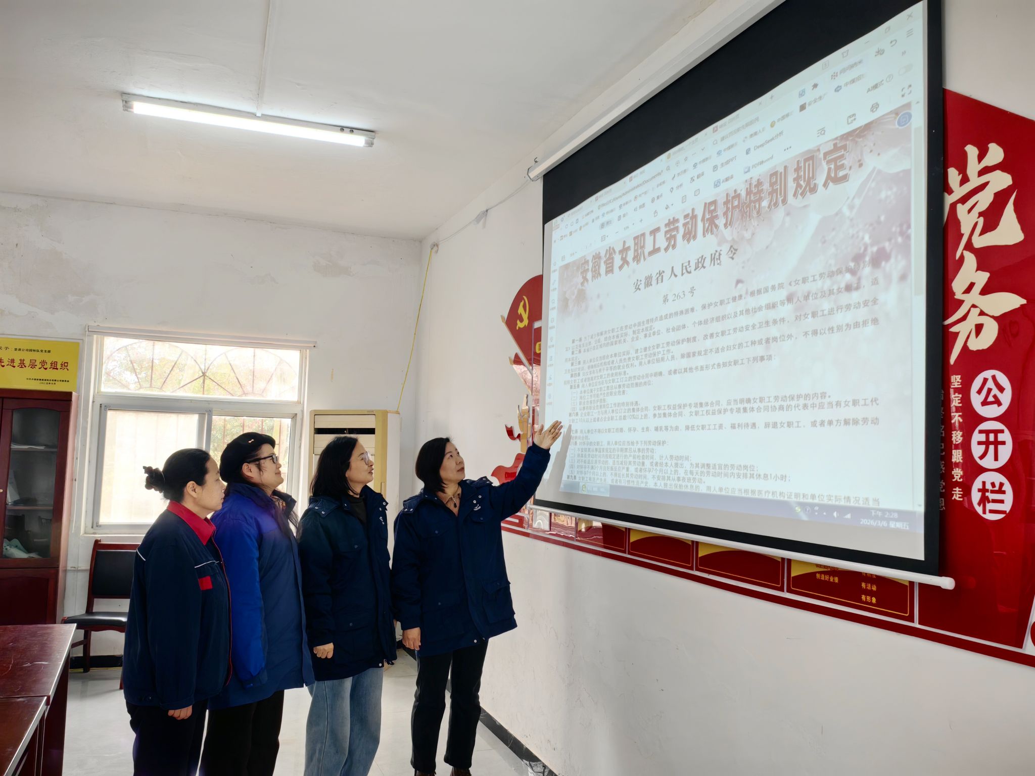 本次宣传重点围绕《中华人民共和国妇女权益保障法》《安徽省女职工劳动保护特别规定》《反家庭暴力法》等法律法规,聚焦职场权益、劳动保护、生育保障、反性别歧视、身心健康等重点内容,通过现场讲解、发放宣传资料等形式,用通俗易懂的语言解读政策条款,帮助女职工明晰权利边界、掌握维权方法,让法治知识入脑入心。确保女职工懂得如何运用法律维护劳动权益,如何在日常工作中保障自身安全,如何在制度框架内寻求支持。让她们的笑容更加从容,脚步将更加坚定。让法治阳光照亮女职工工作生活的方方面面,为她们撑起坚实的权益“保护伞”。