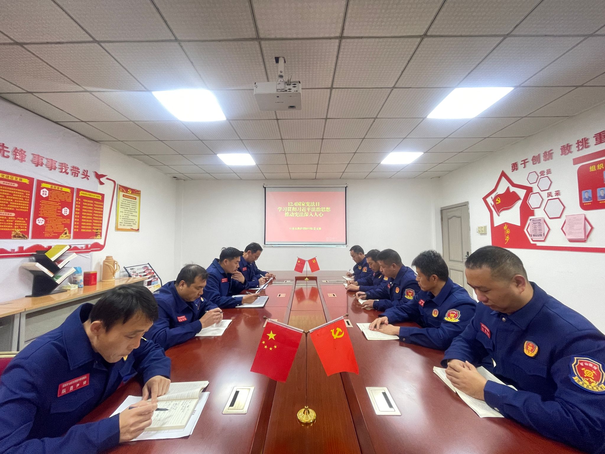 在第十二个“12·4”全国宪法日来临之际,为深入学习贯彻习近平法治思想,推动宪法精神在应急救援队伍落地生根,12月4日,口孜东救护消防中队党支部组织开展全国宪法日宣传教育活动,以专题学习、解读、研讨的形式,让全体队员深刻领悟宪法的核心要义与要求,筑牢思想根基。