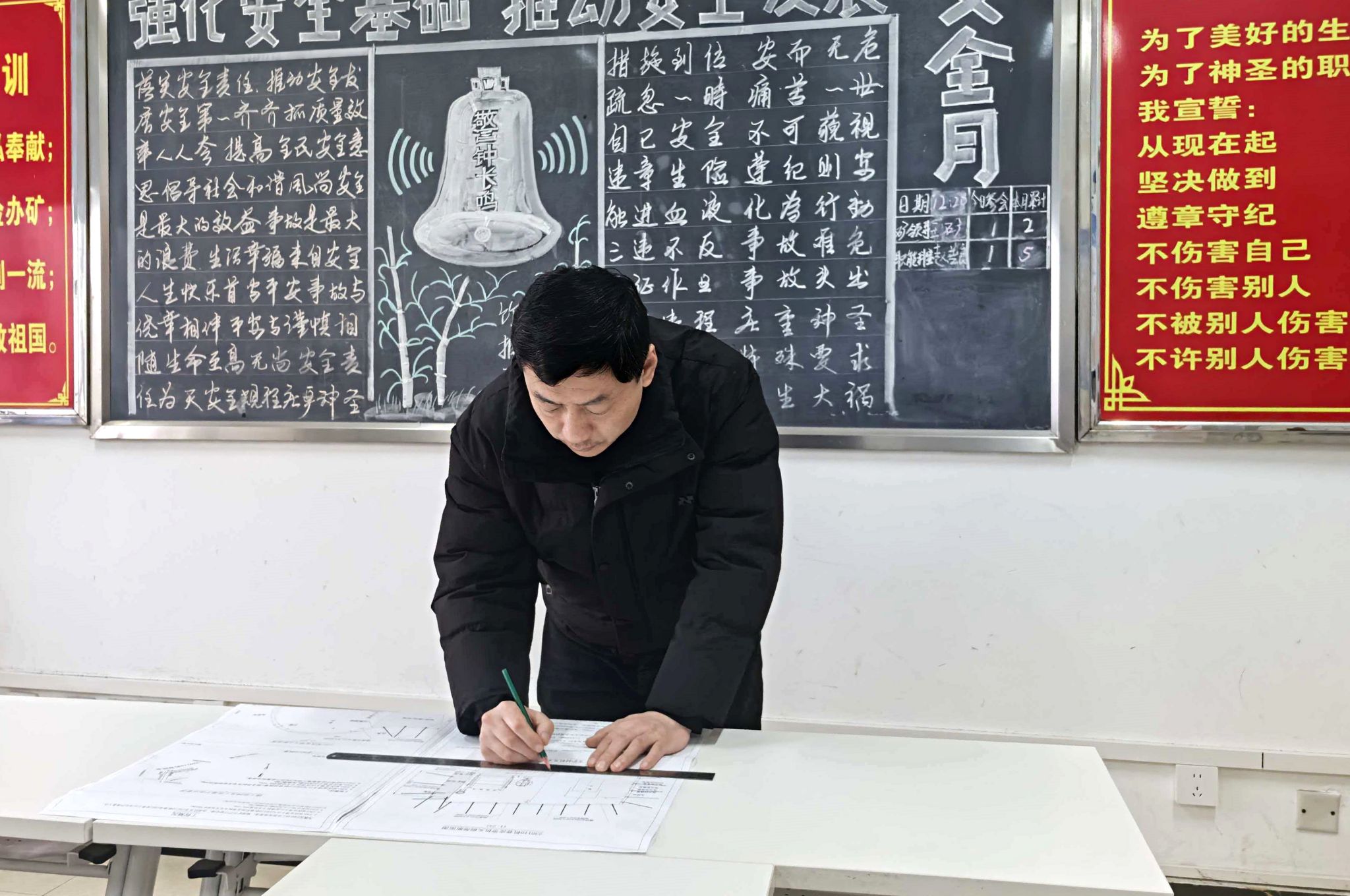 深耕培训,夯实安全根基。王璐始终将职工安全教育摆在首位,从严抓实安全培训工作。他严格落实矿“每日一题、每周一案、每月一考”要求,为职工配备专属学习记录本,督促职工学深悟透;利用班前会、周五安全例会播放事故警示教育片,宣贯周边矿井事故案例,引导职工吸取教训、举一反三。此外,他结合“安全生产月”等活动开展多样化安全宣传,月底按需组织专项考试,确保培训落地见效,切实筑牢矿井安全生产防线。