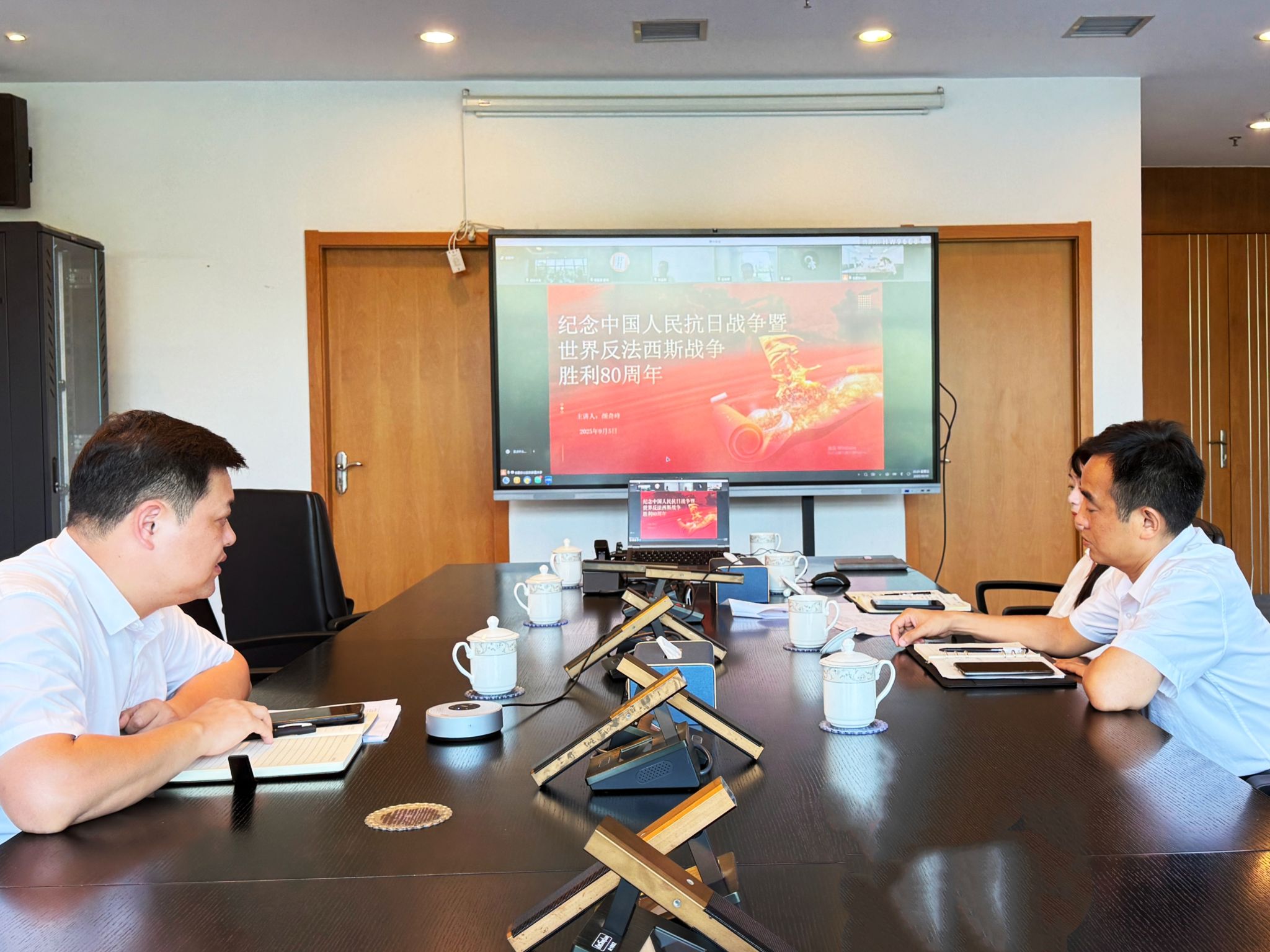 近日,为纪念中国人民抗日战争暨世界反法西斯战争胜利80周年,新能源公司通过线上平台举办了专题党课。公司党委书记颜奇峰同志担任主讲人,为全体党员干部带来一场深刻而富有教育意义的党课。