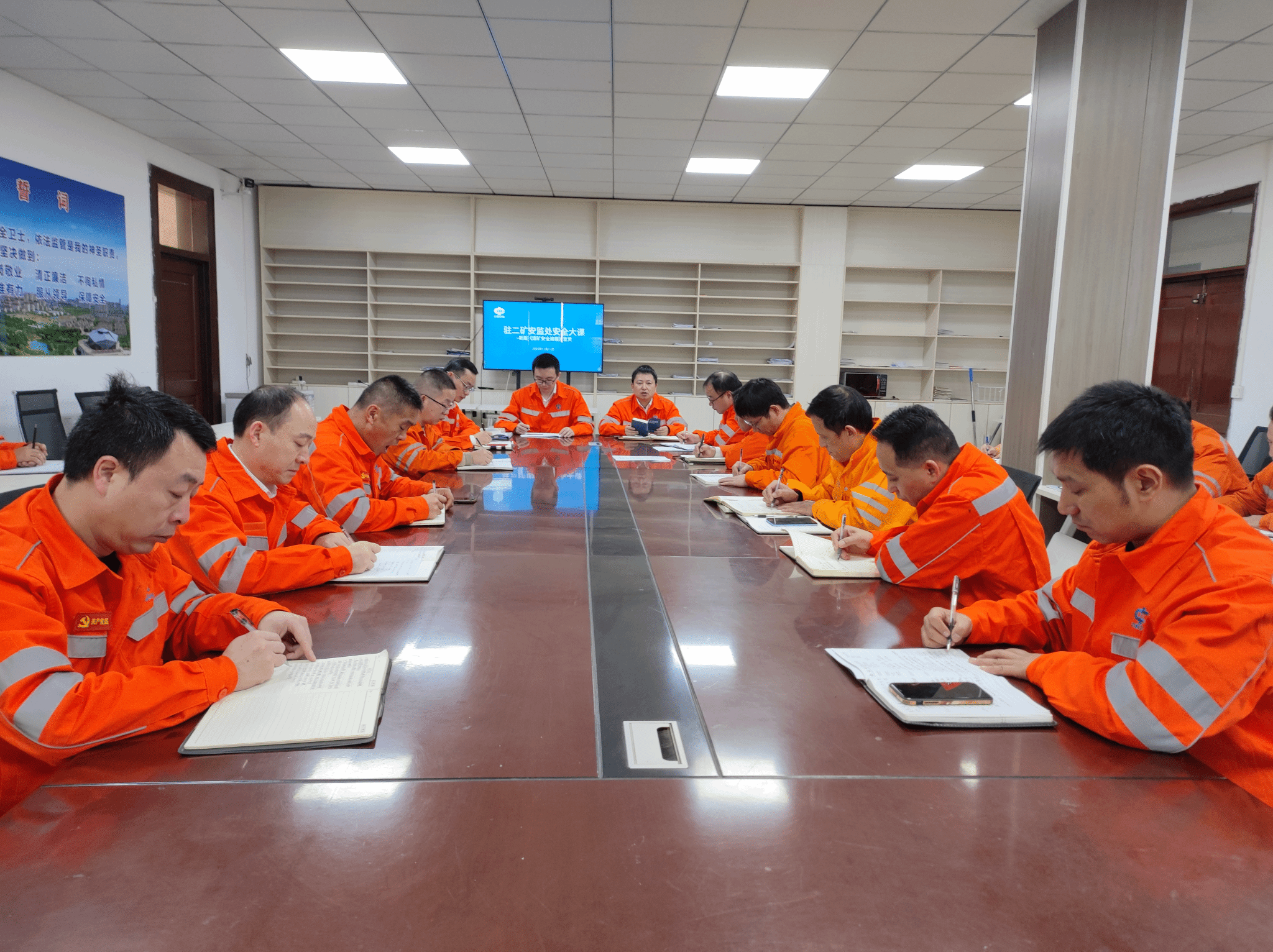 我们是矿井安全的守门人,只有自己先学深悟透新版《规程》,才能在日常监管中精准发现问题、有效防范风险。培训开篇,安监科科长结合驻矿安监处的工作职责,点明了此次内部培训的核心意义。不同于面向全矿的普及性培训,本次学习更聚焦安监工作实际需求,以精准对标、靶向提升为目标,重点围绕新版《规程》中与监管职责紧密相关的内容展开——从通风系统合规性检查标准、瓦斯浓度监测预警阈值调整,到防治水作业现场监管要点、顶板支护质量验收新规,再到智能化采掘设备安全监管的新增要求,科长逐条款结合日常监管案例进行解读,让抽象的规程条款转化为可落地的监管动作。